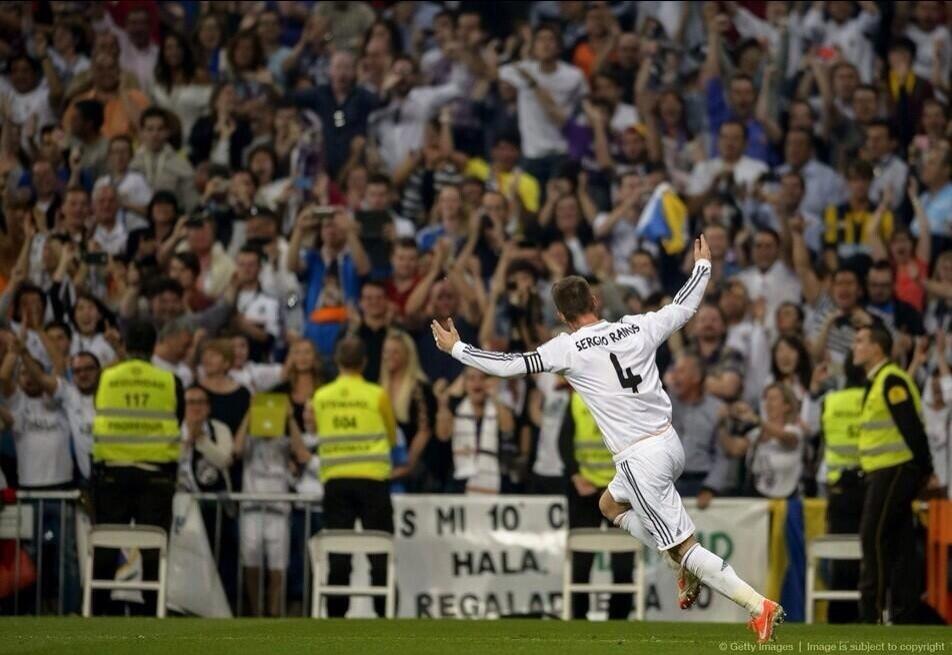 En el minuto 58 marcaba el Madrid, falta que bota Di María, cabecea Cristiano y Ramos sobre la línea de gol hace el 1-1.